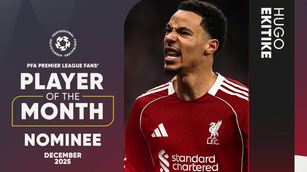 Hugo Ekitike has been shortlisted for the PFA Premier League Fans’ Player of the Month award for December.
